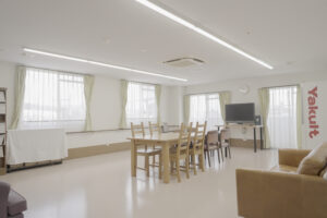 食堂、デイルーム、浴室(個浴、リフト、寝台浴)、トイレ